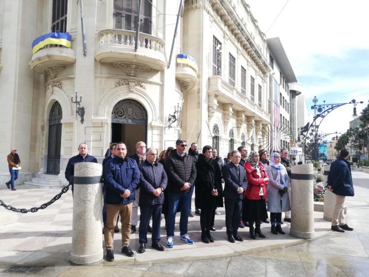 Con motivo del primer aniversario de la guerra en Ucrania y adhiriéndose a la iniciativa impulsada por la Federación Española de Municipios y Provincias (FEMP), la Ciudad Autónoma de Ceuta ha realizado una concentración a las puertas de la Asamblea.