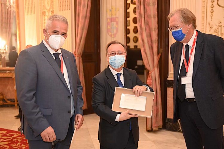 El presidente de la Ciudad, Juan Vivas, ha recibido este martes en el Salón del Trono a los miembros del Consejo directivo de la naviera alemana FRS, con quienes ha mantenido un encuentro en el que también ha participado una representación de la Autoridad Portuaria de Ceuta encabezada por su presidente Juan Manuel Doncel.