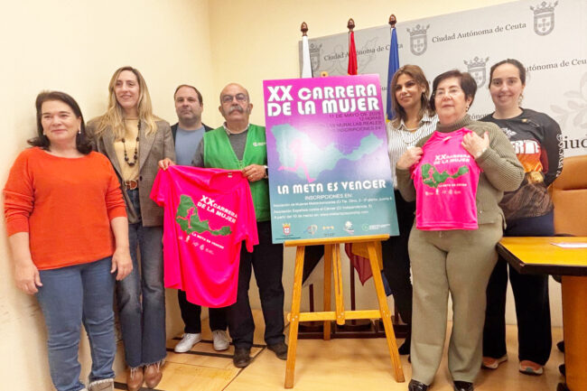 Este jueves, en la Sala de Prensa del Palacio de la Asamblea, se llevado a cabo la presentación oficial de la XX Carrera de la Mujer, en la que han estado presentes la consejera de Sanidad y Servicios Sociales, Nabila Benzina, el director general de Deporte, Sergio Aguilera, y la presidenta de la Asociación Ceutí de Mujeres Mastectomizadas (Acmuma), Hilda Castro.