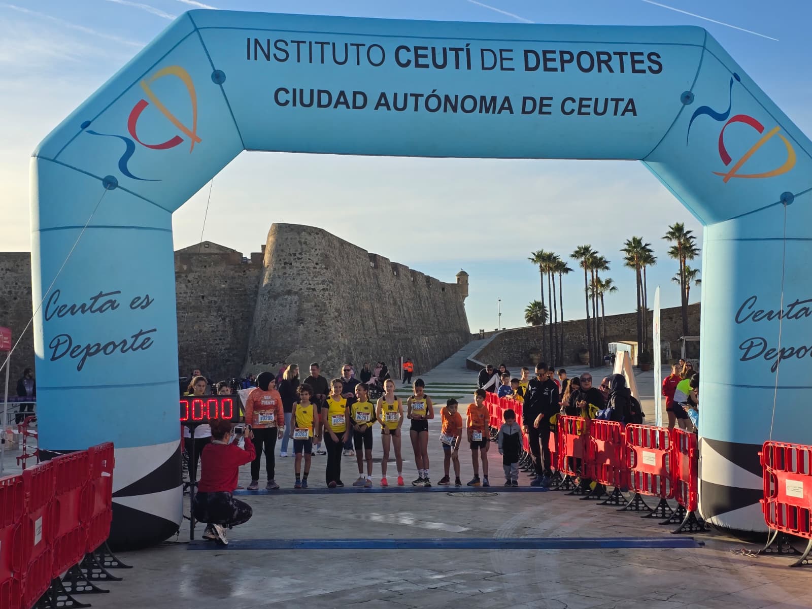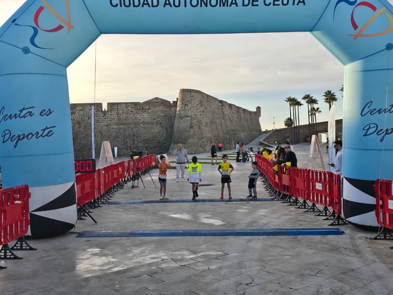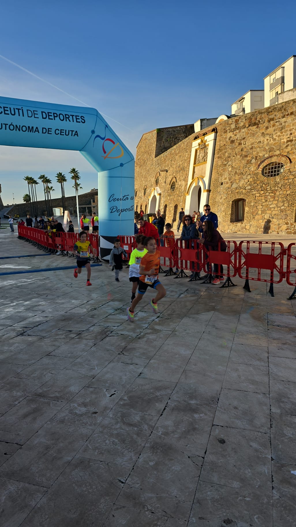 La jornada comenzó antes de las 10:00 horas con la prueba destinada a los más pequeños, que una vez más llenaron de energía, ilusión y entusiasmo el entorno monumental. Familias se acercaron para animar a los jóvenes atletas, que demostraron que el espíritu deportivo ceutí sigue creciendo con cada generación.