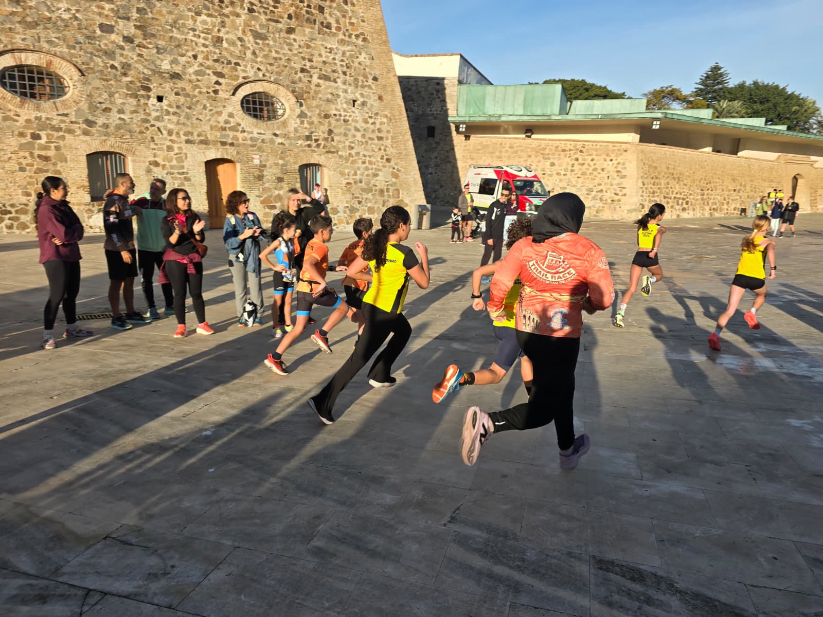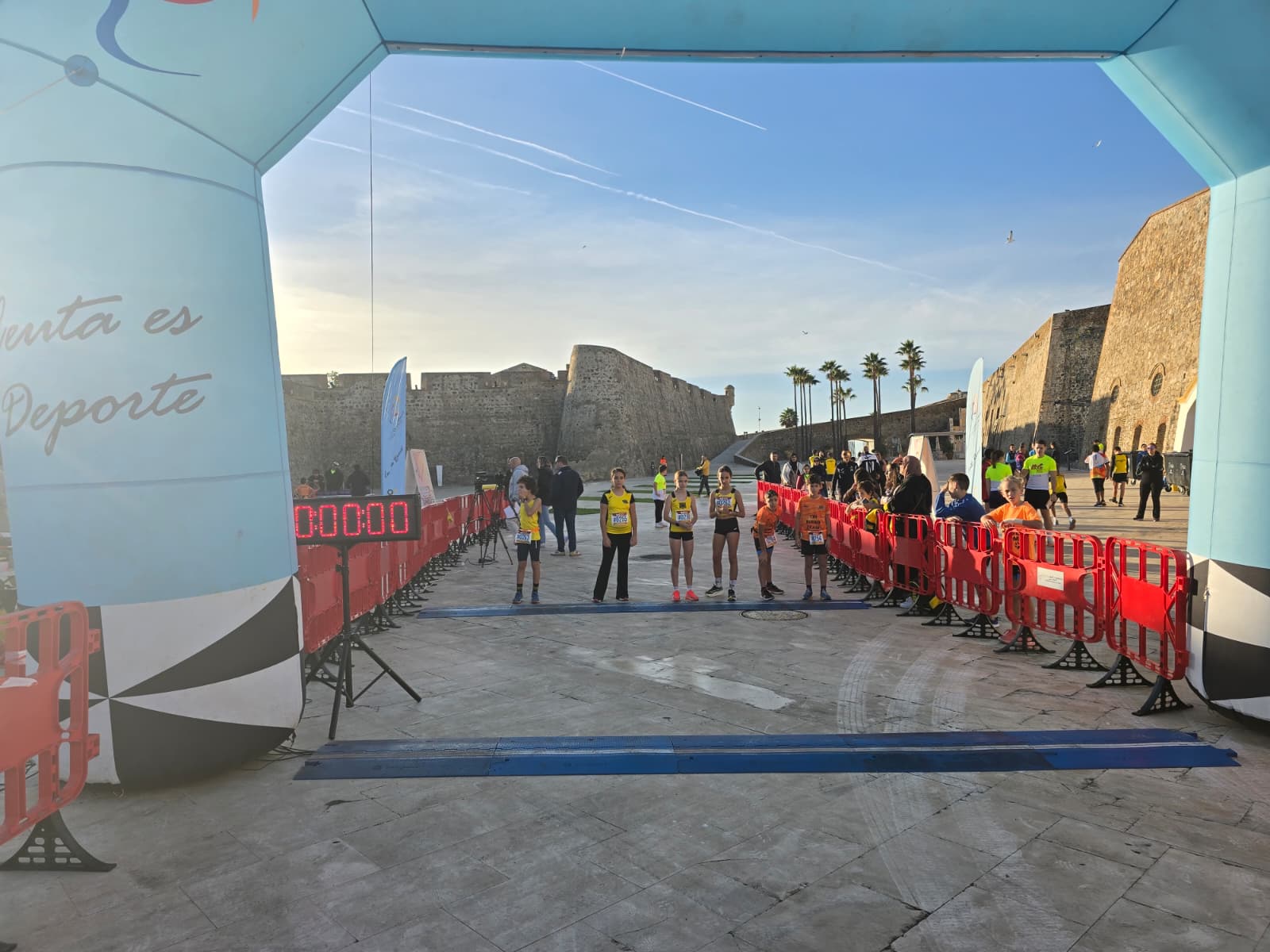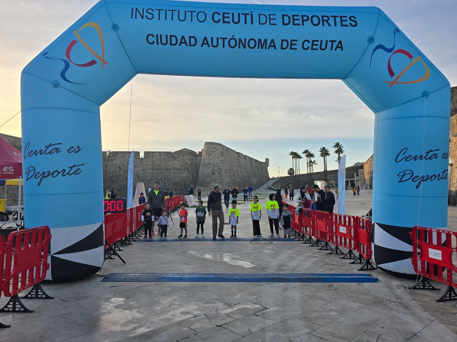 La jornada comenzó antes de las 10:00 horas con la prueba destinada a los más pequeños, que una vez más llenaron de energía, ilusión y entusiasmo el entorno monumental. Familias se acercaron para animar a los jóvenes atletas, que demostraron que el espíritu deportivo ceutí sigue creciendo con cada generación.