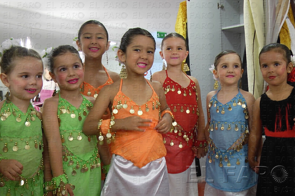 Tan sólo treinta minutos antes del inicio del festival, las alumnas más pequeñas lucían sus trajes para exhibir la danza oriental que han practicado durante meses. Otras, mostraban sus vestimentas de flamenco, mientras que algunas con toques orientales también ensayaban antes de salir a escena.