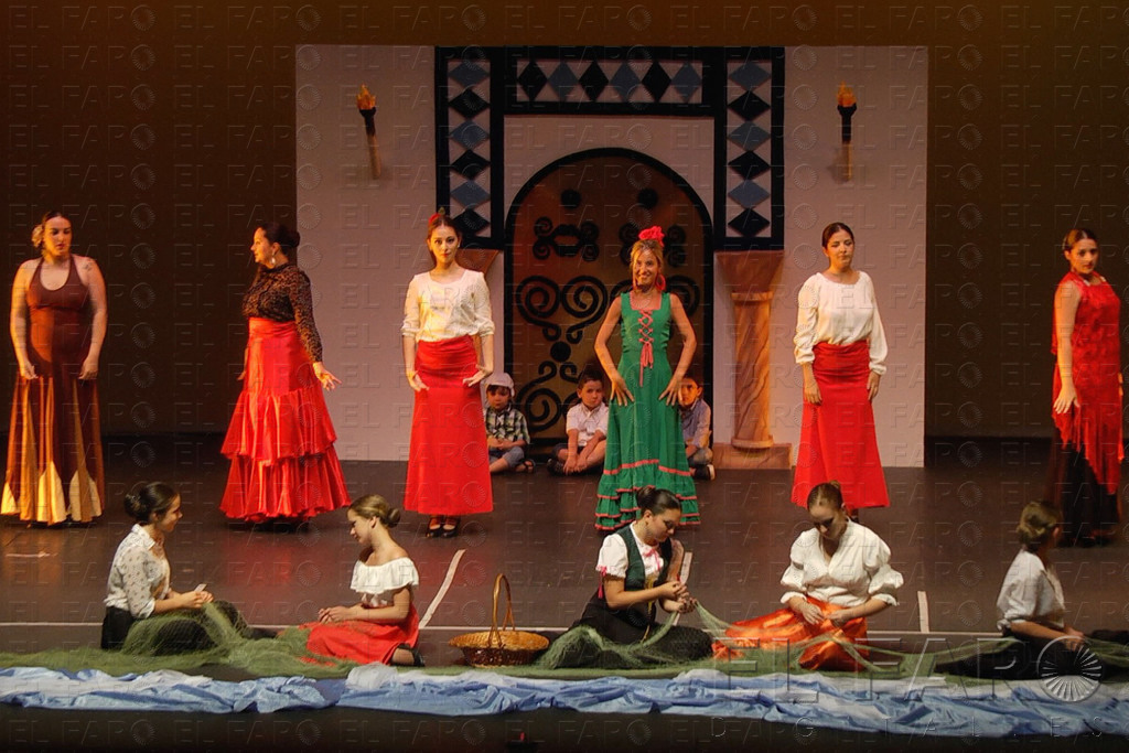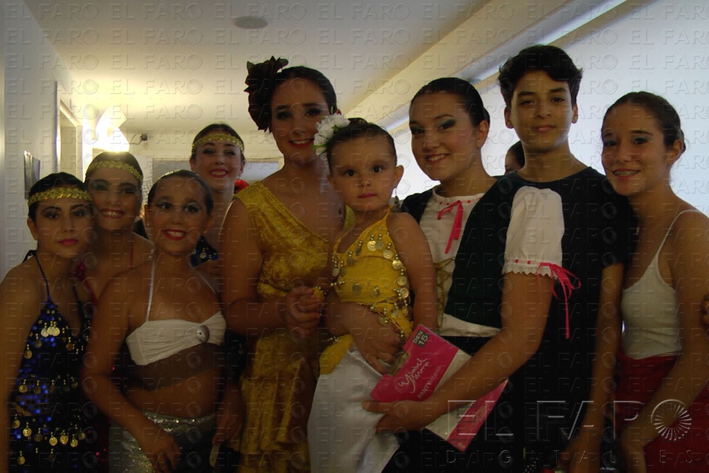 Con tan sólo 2 años de edad, la más pequeña de las alumnas demostraba todo su arte antes de salir al escenario de un teatro que mostraba un lleno absoluto. Entre bambalinas, las mayores se encargaban de ayudar al resto de sus compañeras. Desde horas antes del inicio del espectáculo, a las nueve de la noche, los camerinos se convirtieron en un ir y venir de chicas y chicos pendientes de trajes, maquillajes y peinados para que todo estuviera a punto en el momento del inicio del festival.