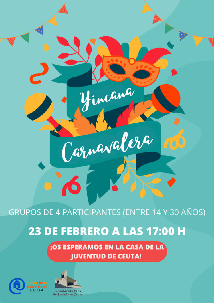 La Casa de la Juventud y la Biblioteca Pública Adolfo Suárez han organizado conjuntamente una Yincana Carnavalera, actividad que, dirigida a jóvenes de entre 14 a 30 años, tendrá lugar el próximo 23 de febrero a partir de las 17.00 horas en las dependencias del organismo juvenil, ubicadas en la calle Teniente Olmo.